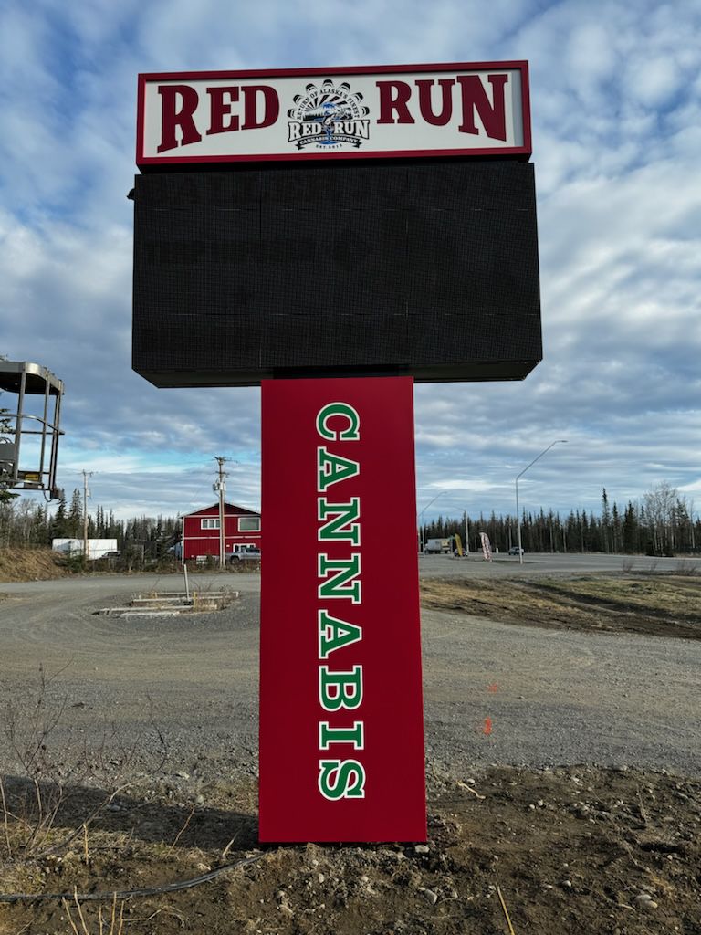 Red Run Pole Sign with Digital Display